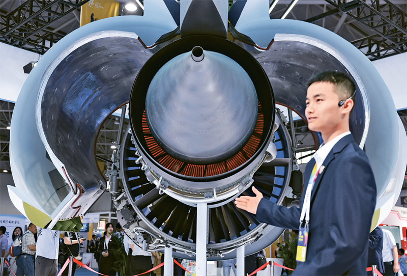 ??航空發(fā)動(dòng)機(jī)是國(guó)之重器,是國(guó)家科技實(shí)力和創(chuàng)新能力的重要體現(xiàn)。這些年,我國(guó)航空發(fā)動(dòng)機(jī)研制戰(zhàn)線堅(jiān)持自主創(chuàng)新,大力弘揚(yáng)勞模精神、工匠精神,不斷加快航空發(fā)動(dòng)機(jī)自主研制步伐,為建設(shè)航空強(qiáng)國(guó)、實(shí)現(xiàn)高水平科技自立自強(qiáng)拼搏奮斗。圖為2023年5月26日,參展工作人員在2023中國(guó)國(guó)際大數(shù)據(jù)產(chǎn)業(yè)博覽會(huì)現(xiàn)場(chǎng)介紹國(guó)產(chǎn)CJ1000A民用大涵道比渦扇發(fā)動(dòng)機(jī)。 新華社記者 歐東衢/攝