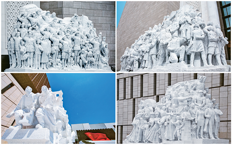 ??中國(guó)共產(chǎn)黨歷史展覽館西側(cè)廣場(chǎng)上矗立的《信仰》、《偉業(yè)》、《攻堅(jiān)》、《追夢(mèng)》四組大型雕塑,莊重巍然、充滿力量,講述著中國(guó)共產(chǎn)黨團(tuán)結(jié)帶領(lǐng)全國(guó)各族人民艱苦奮斗、不懈奮斗的歷程。圖為四組大型雕塑拼版照片。 劉新武/攝